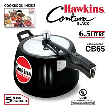 The Hawkins Contura Black 6.5 Litre Pressure Cooker (CB65) is specially designed for larger families and heavy cooking needs. Its innovative Contura curved body design allows convenient stirring, better visibility while cooking, and easy removal of food. This makes it perfect for cooking rice, dal, curries, vegetables, and other everyday meals in larger quantities.