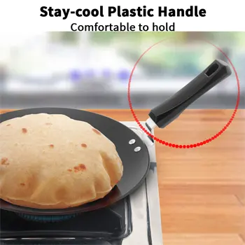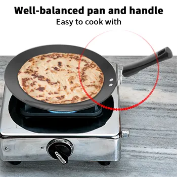 The tava features a strong 3.15 mm thick stainless steel bracket with two sturdy stainless steel rivets, ensuring the handle remains firmly attached and does not loosen over time. Its well-balanced design provides comfortable handling and better cooking control.