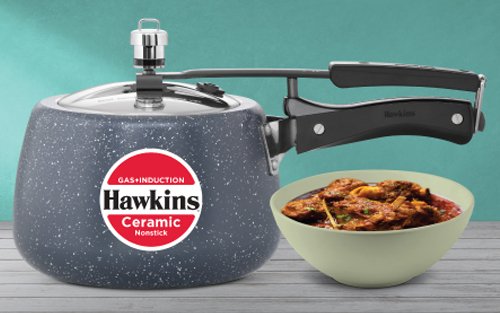 The Hawkins Ceramic NS 2 Litre Pressure Cooker (ICC20) is designed for healthy and efficient cooking with premium ceramic nonstick technology. It uses less oil while delivering crisp, delicious meals, making it perfect for small families.