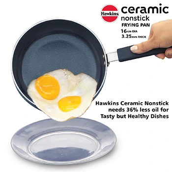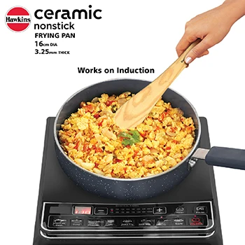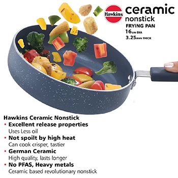 The Hawkins Induction Compatible Ceramic Nonstick Frying Pan 23 cm (ICF23) is designed for healthy, fast, and convenient cooking. Its premium German ceramic nonstick coating ensures excellent food release, allowing you to cook delicious meals with less oil while maintaining great taste.